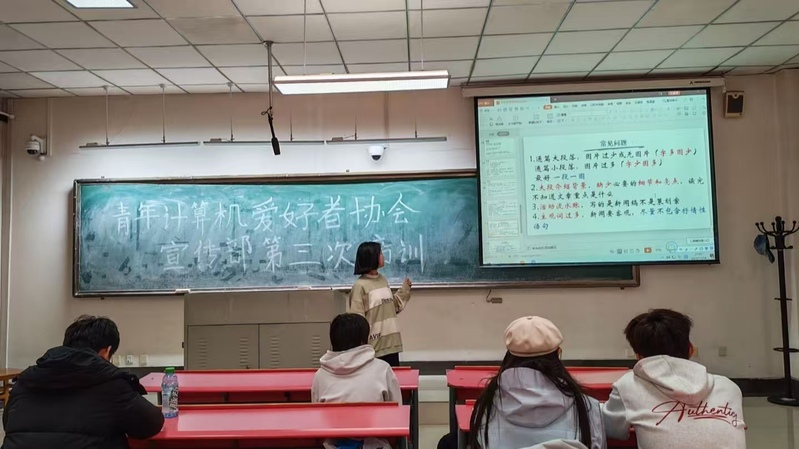 近日,学院青年计算机爱好者协会统筹开展了一系列专项技能培训,涵盖宣传、办公、开发、算法、网络安全等多个部门,以“手把手教学、学了就能用”为特色,全面提升成员的实操能力。