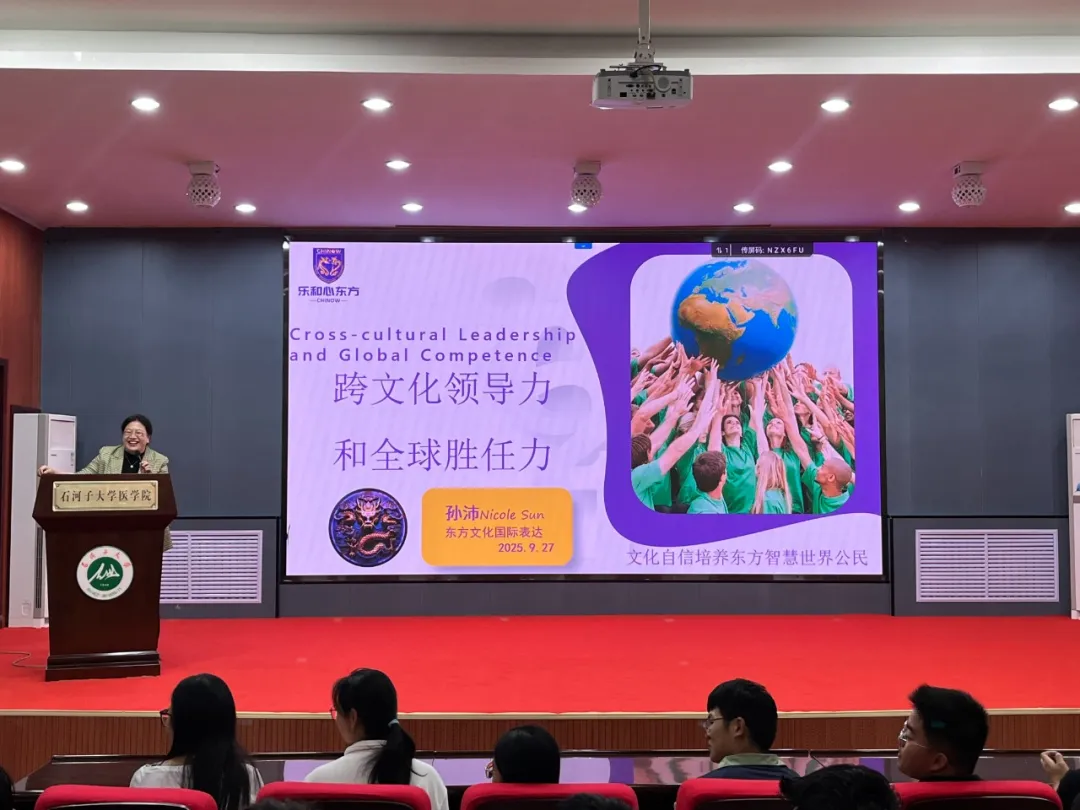 孙沛还分享了自己带领学生走进联合国的实践经验,强调在拓展国际视野的同时,要积极传播中华优秀传统文化。她以“以身力行、知行合一”的实际行动,向师生展示了跨文化领导力的实践路径——既需具备全球视野,更应扎根文化根基。