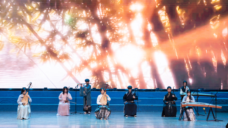 典礼尾声,红烛舞团的拉丁舞《青春旋风·国标热潮》、2025级计算机类新生的器乐演奏《湖光筝影·弦情筝韵》以及学院合唱团献唱的《我乘着风飞过来》接连上演,为这场青春盛会画上圆满句号。