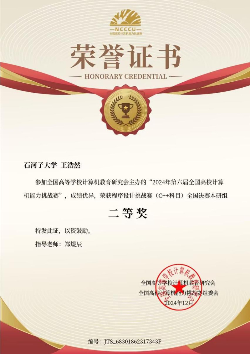 “路虽远,行则将至;事虽难,做则必成。”这句话伴随着王浩然走过了三年大学时光。在许多同龄人奔赴远方时,他选择将根更深地扎进培育他的母校——凭借专业第二的绩点、二十余项竞赛奖项与扎实的科研实践,他成功保研至石河子大学,选择在这片熟悉的土地上,继续他的计算机理想。