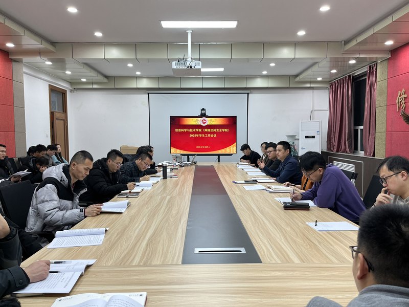 为凝聚育人共识,擘画成长蓝图,12月25日下午,石河子大学信息科学与技术学院(网络空间安全学院)2025年学生工作会议在学院三楼会议室顺利召开。会议旨在全面总结过去一年学生工作的成效与经验,深入分析育人工作中面临的新形势与新挑战,系统谋划下一阶段重点任务,进一步推动构建以“学生成长发展为中心”的协同育人新格局。学院党委书记戴建国、党委副书记刘红勤出席会议,全体班主任、副班主任及辅导员齐聚一堂,共同探讨育人育才之路。会议由党委副书记刘红勤主持。