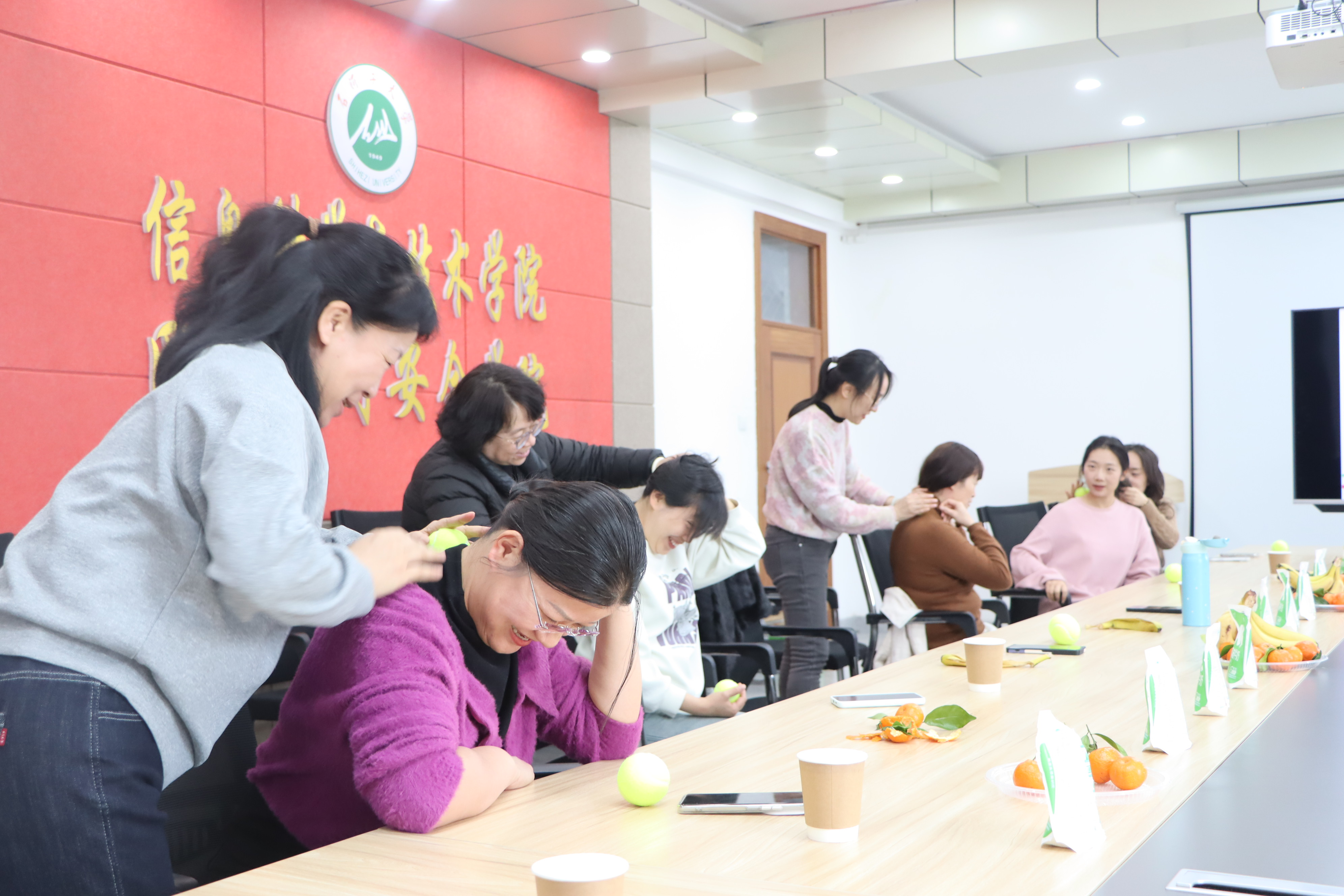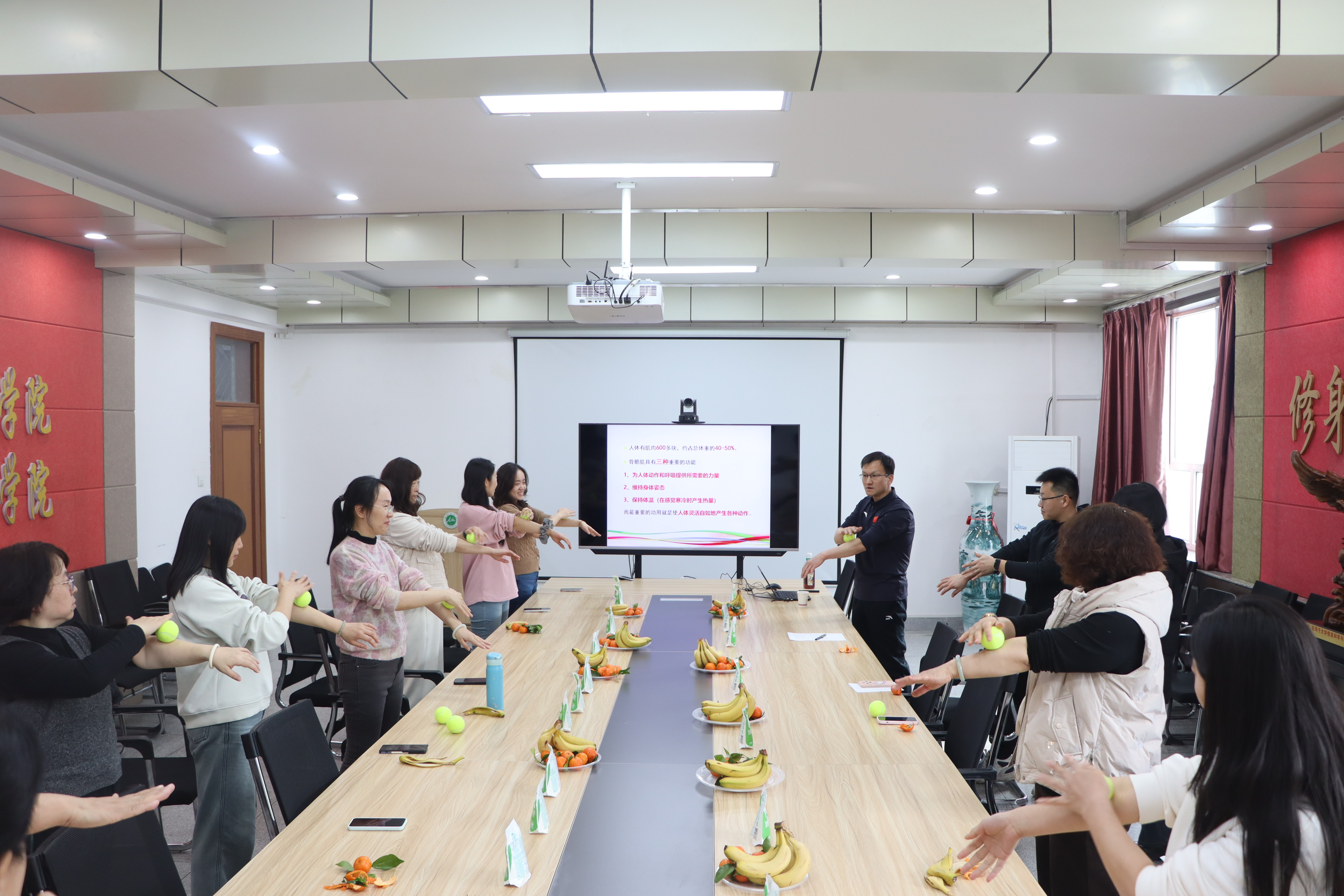 活动中,学院工会向全体女教师致以节日问候,感谢她们在教学、科研和管理岗位上的辛勤付出与积极贡献。乔明老师以“教师日常运动锻炼与放松训练”为题,针对高校教师长期伏案、站立授课的职业特点,深入浅出地讲解了常见职业劳损的预防策略,并现场带领大家练习了办公室微运动操和肌肉放松训练。女教师们热情参与,在轻松愉悦的氛围中掌握了实用的健康小妙招。