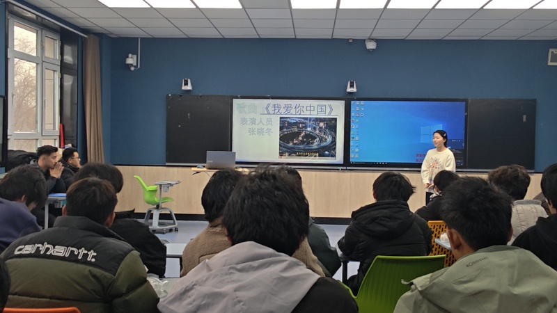 班会在张晓冬同学深情演绎的《我爱你中国》歌声中拉开序幕。在“将个人理想融入国家发展蓝图”交流环节,同学们积极发言,共同探讨如何通过需求对接、兴趣结合等方式,找准个人成长与社会需要之间的契合点。大家一致表示,要不断锤炼品德、提升本领,努力在平凡岗位上创造不平凡的业绩。